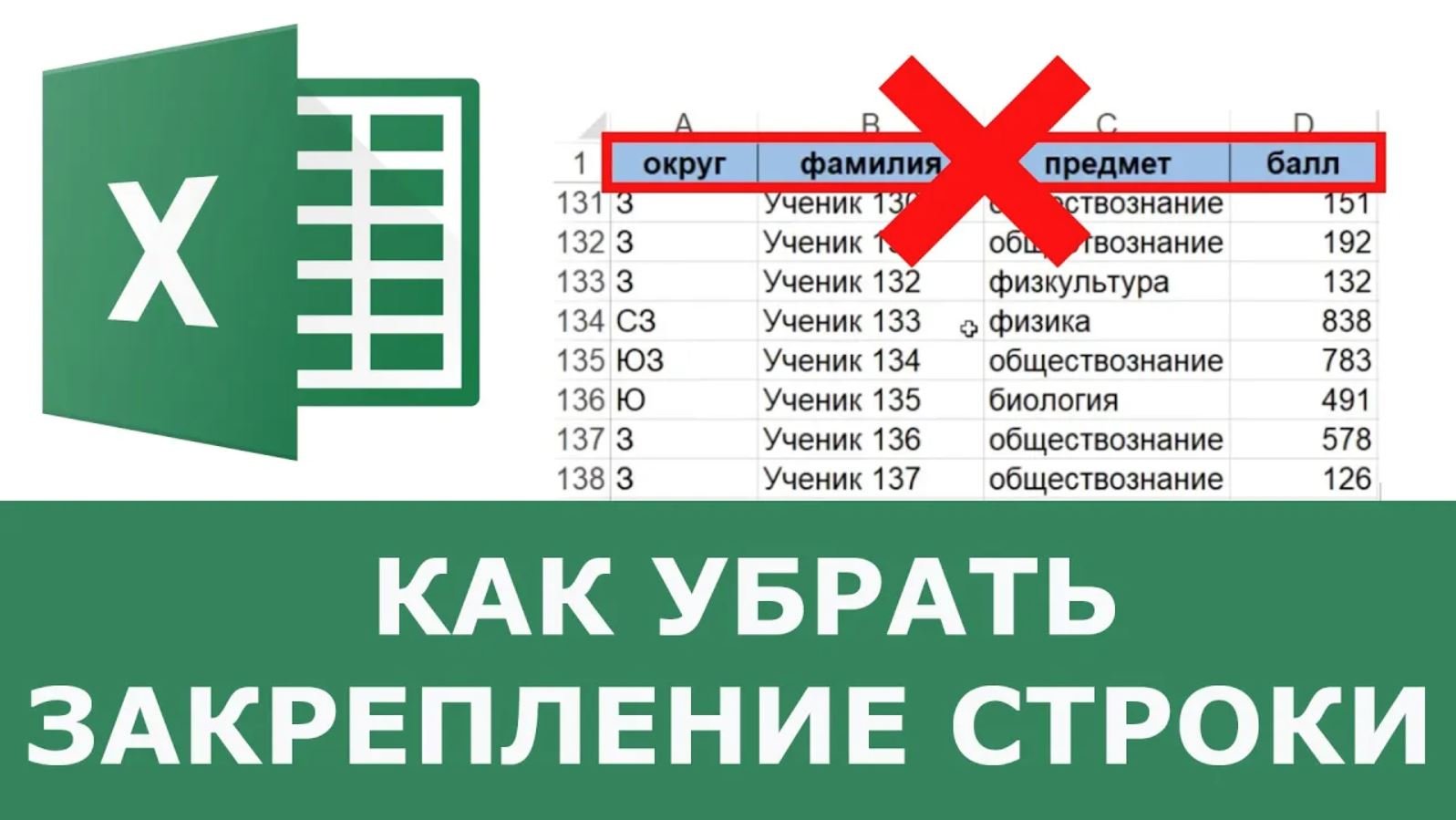 Как убрать закрепленную строку в excel