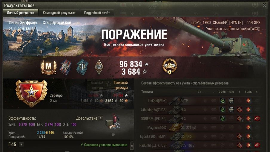 ЛИНИЯ ЗИГФРИДА МАСТЕР на 114 SP2 ОПЫТ: 768 - 1198 СУММАРНЫЙ УРОН: 8584 медаль КАЛИБР ОСНОВНОЙ