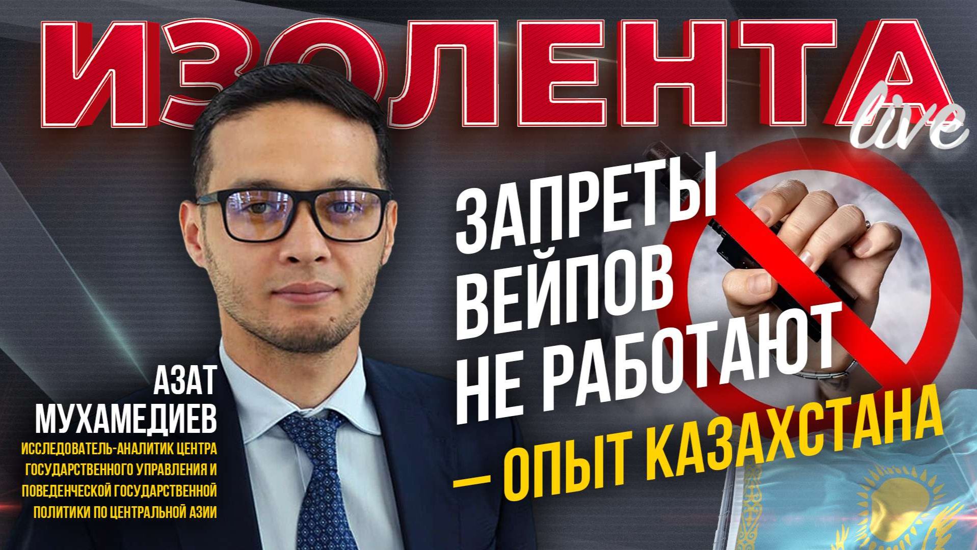 Прошёл год после запрета вейпов в Казахстане. Что пошло не так? Почему рынок не исчез, а ушёл в подполье? Об этом и не только говорили в эфире программы «ИзолентаLive» с исследователем-аналитиком Центра государственного управления и поведенческой государственной политики по Центральной Азии Азатом Мухамедиевым. Пётр Лидов: https://t.me/pvsgns Трофим Татаренков: https://t.me/NeBrigada Задонатить, участвовать в голосовании и задать вопрос можно тут: https://donate.stream/izolentalive. Нравятся наши выпуски? Подпишись на «Изолента+»: https://t.me/tribute/app?startapp=sr3 Изолента в Телегам https://t.me/izolentalive Изолента ВКонтакте https://vk.com/izolentalive Изолента в Одноклассниках: https://ok.ru/group/70000002758400 Кулинарный проект "Мужики на кухне": https://t.me/tribute/app?startapp=si76 Радио Sputnik: https://t.me/radio_sputnik «ИзоТОЛК» — это новый проект «ИзолентаLive» и «Изолента+»! Есть что сказать? Оставь заявку здесь: https://t.me/IzoTalkBot. Книга Трофима «Темник», как говорят злые языки, главная книга года. Купить её можно тут: https://litgid.com/catalog/sovremennaya_proza/temnik/