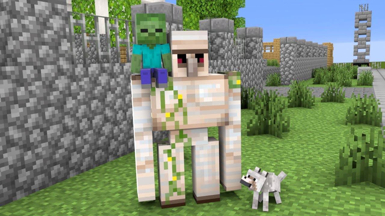 Железный Голем защищает маленького зомби— Мультик с Персонажами Майнкрафт