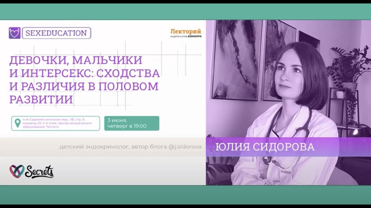 Половое созревание ребенка может доставлять много проблем как детям, так и родителям. Пока мальчики с тревогой ждут, когда на лице появится щетина, девочки переживают по поводу будущего размера груди и менструаций. В этот непростой период на помощь детям могут прийти родители. Как мамам и папам не теряться в сложных вопросах полового развития? Им поможет лекция Юлии Сидоровой «Девочки, мальчики и интерсекс: сходства и различия в половом развитии». «Как устроены мальчики»: https://book24.ru/product/kak-ustroen... «Как устроены девочки»: https://book24.ru/product/kak-ustroen... «Только для девочек!»: https://book24.ru/product/tolko-dlya-...