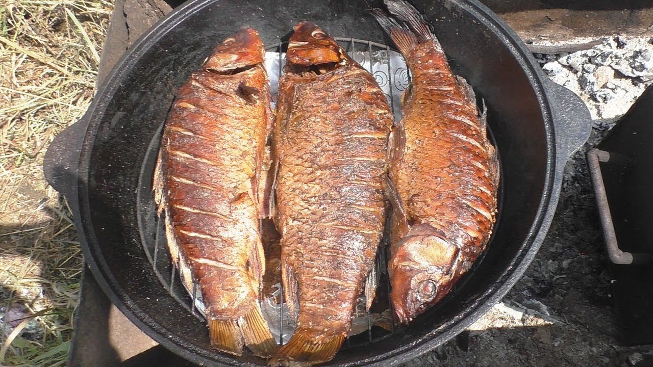 РЫБА В КАЗАНЕ, НА КОСТРЕ, САЗАН,Карп ГОРЯЧЕГО КОПЧЕНИЯ, Отличный рецепт!