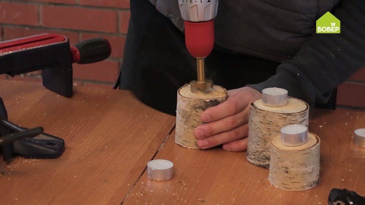 Подсвечник из березового полена. Отличная идея для декора в Новый год