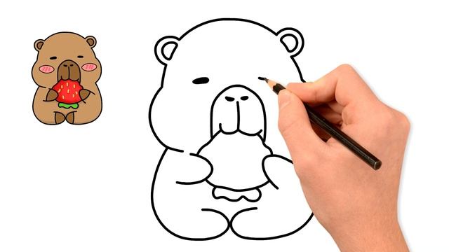 Как нарисовать капибару, которая ест клубнику, простое пошаговое руководство