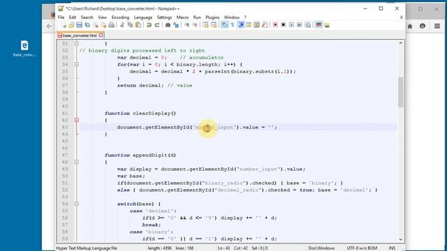 ICS 312 JavaScript Base Converter Assignment Part 1