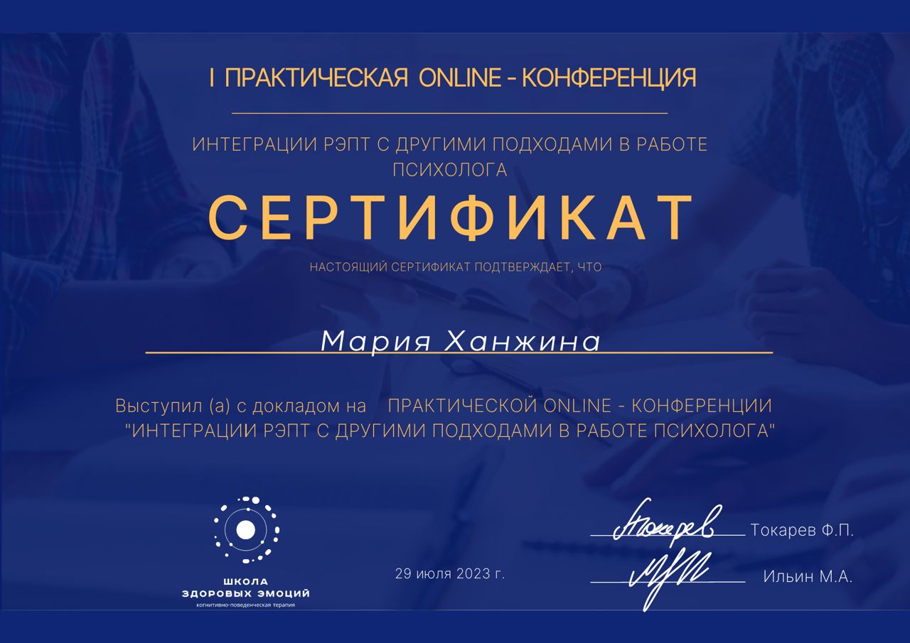 Мой доклад на конференции "Интеграция РЭПТ с другими подходами в работе психолога"