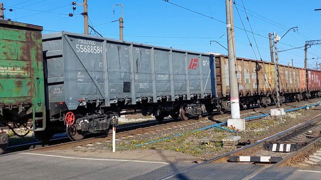 Неожиданный тормоз: грузовой поезд блокирует железнодорожный переезд!