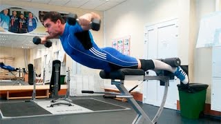 Мой сайт: Твой Тренер - http://tvoytrener.com Магазин спортивного питания: https://tvoypit.com Заказать индивидуальный комплекс упражнений: http://tvoytrener.com/sotrydnichestvo/kompleks_upragnenii.php Вес и количество повторений для новичков Для мужчин: 10 - 15 повторений по 4 - 5 кг. 2 - 3 подхода. Для женщин: 10 - 15 повторений по 2 - 3 кг. 2 - 3 подхода. Нагрузка по группам мышц Нагрузка указана по 10-ти бальной шкале (общая нагрузка суммируется) Поясница 10 (высокая) Ягодицы 7 (высокая) Задняя дельта 7 (высокая) Задняя часть бедра 7 (высокая) Верх спины 5 (средняя) Средняя дельта 2 (слабая) Общая нагрузка / тип упражнения 38 (высокая) / базовое глобальное Описание упражнения Это упражнение представляет собой смесь гиперэкстензии и махов гантелями в стороны в наклоне. Эта смесь позволяет разминать и тренировать всю спину. Гиперэктензия тренирует поясницу, а махи – заднюю дельту и всю верхнюю часть спины (мышцы, окружающие лопатки). Таким образом, разминается вся спина, от копчика до шеи. Конечно, накачать, таким образом, спину не получится, но вот хорошо размять всю её – вполне. Кроме этого данное упражнение можно использовать, если вы тренируетесь на жиросигание. Ведь оно – довольно энергоёмкое. Веса должны быть небольшие. Как на махах гантелями в стороны. Основные фишки 1. 1. Поднимать спину нужно до уровня ног То есть чтобы ноги и спина образовывали прямую линию. Можно немного выше, но не сильно. Иначе будет переразгиб спины в пояснице и если есть боли в спине, то могут стать сильнее. 2. 2. Махать нужно так, чтобы в верхней точке локти смотрели вверх в потолок. 3. 3. В верхней точке можно делать небольшую паузу. А опускаться лучше как можно ниже. Руки при этом внизу желательно расслаблять и выпрямлять (если позволяет высота). 4. Это упражнение отлично тренирует поясничную часть спины и прокачивает глубокие мышцы, прилегающие к позвоночнику. И вместе с тем, оно не оказывает никакой нагрузки на позвонки. Поэтому советую выполнять наклоны на каждой тренировке всем, у кого болит поясница и есть такие заболевание как: остеохондроз, грыжа диска и протрузия. 5. 4. Это упражнение можно и нужно делать при болях в спине. Оно абсолютно безопасно. Однако, если спина болит, то лучше делать его без веса.