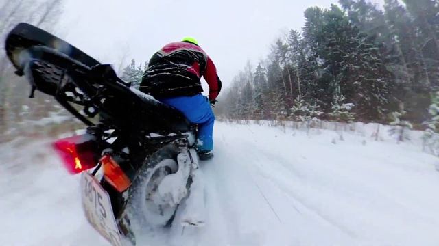 Зимой на мотоцикле Bajaj Boxer. Bajaj Boxer в глубоком снегу. Motorcycle in deep snow.