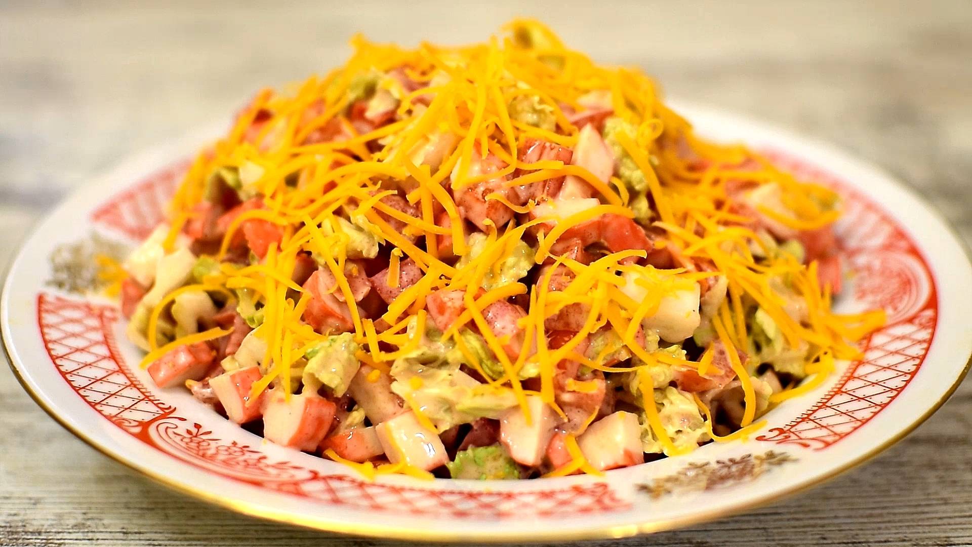 Крабовый салат по-новому - без яиц и кукурузы.