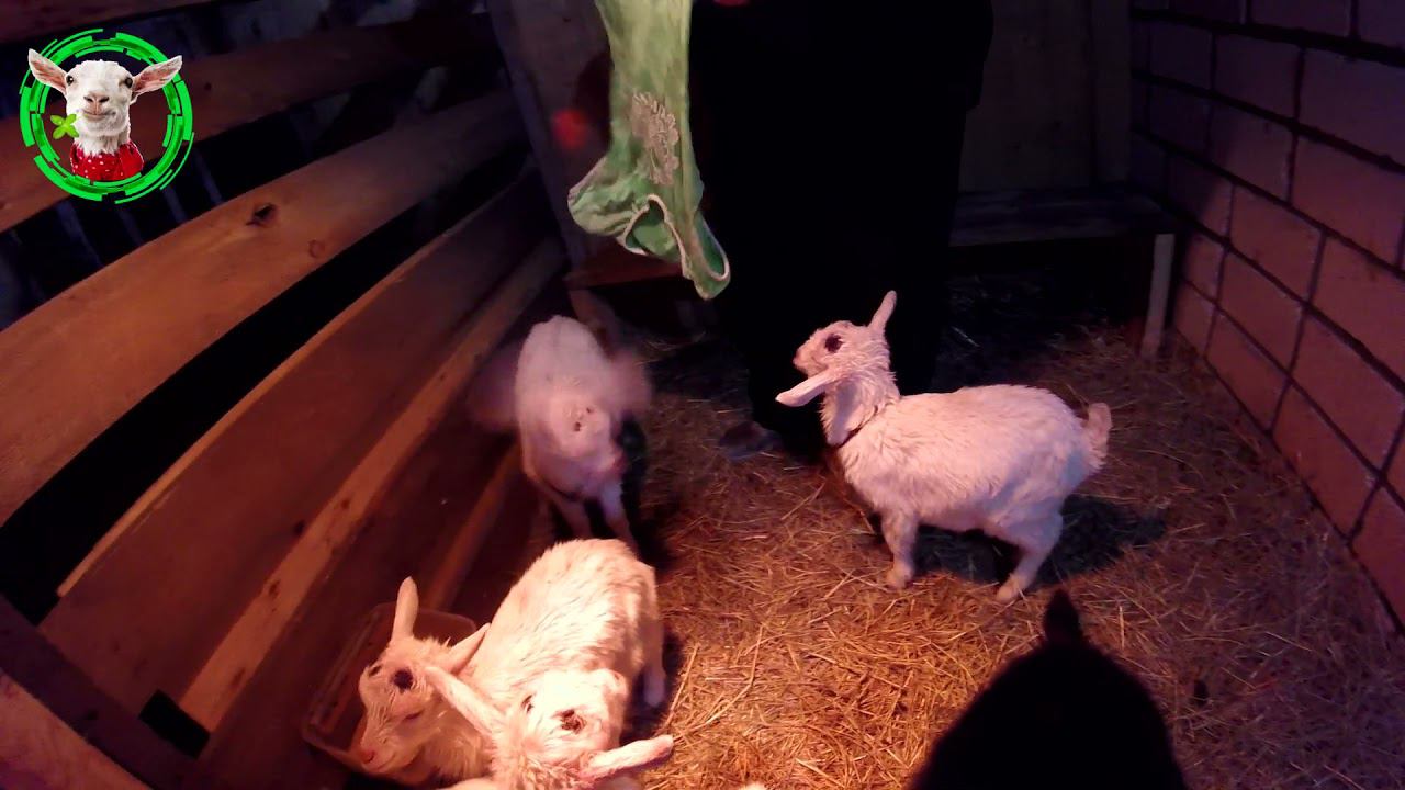 Кормление козлят вечером