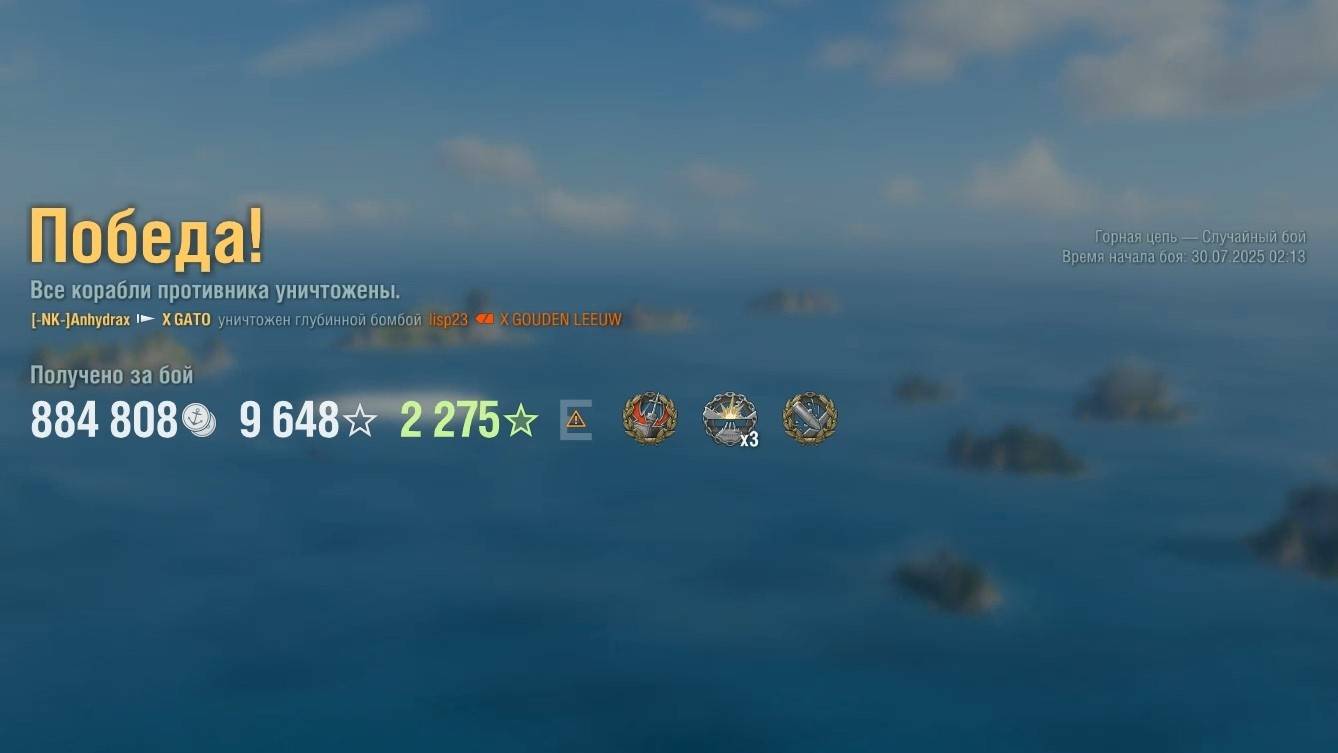 Подводная лодка Gato: +231к урона на карте Горная цепь - Мир кораблей (World of Warships)