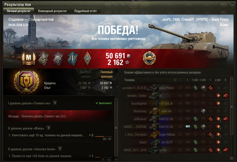 СТУДЗЯНКИ МАСТЕР на Black Prince ОПЫТ: 1441 СУММАРНЫЙ УРОН: 3932 медаль СТАЛЬНАЯ СТЕНА