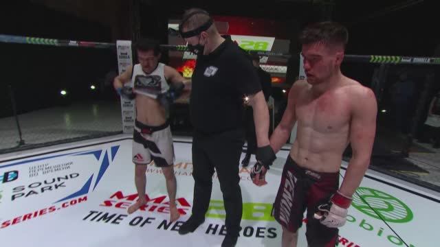 Турнир: Горилла ММА Серия-28 Город проведения турнира: Санкт-Петербург Боец синего угла: Бектурсун Кайыпназар (Кыргызстан) Боец красного угла: Фаридун Джураев (Таджикистан) Победитель: Бектурсун Кайыпназар Способ победы: Единогласное решение судей
