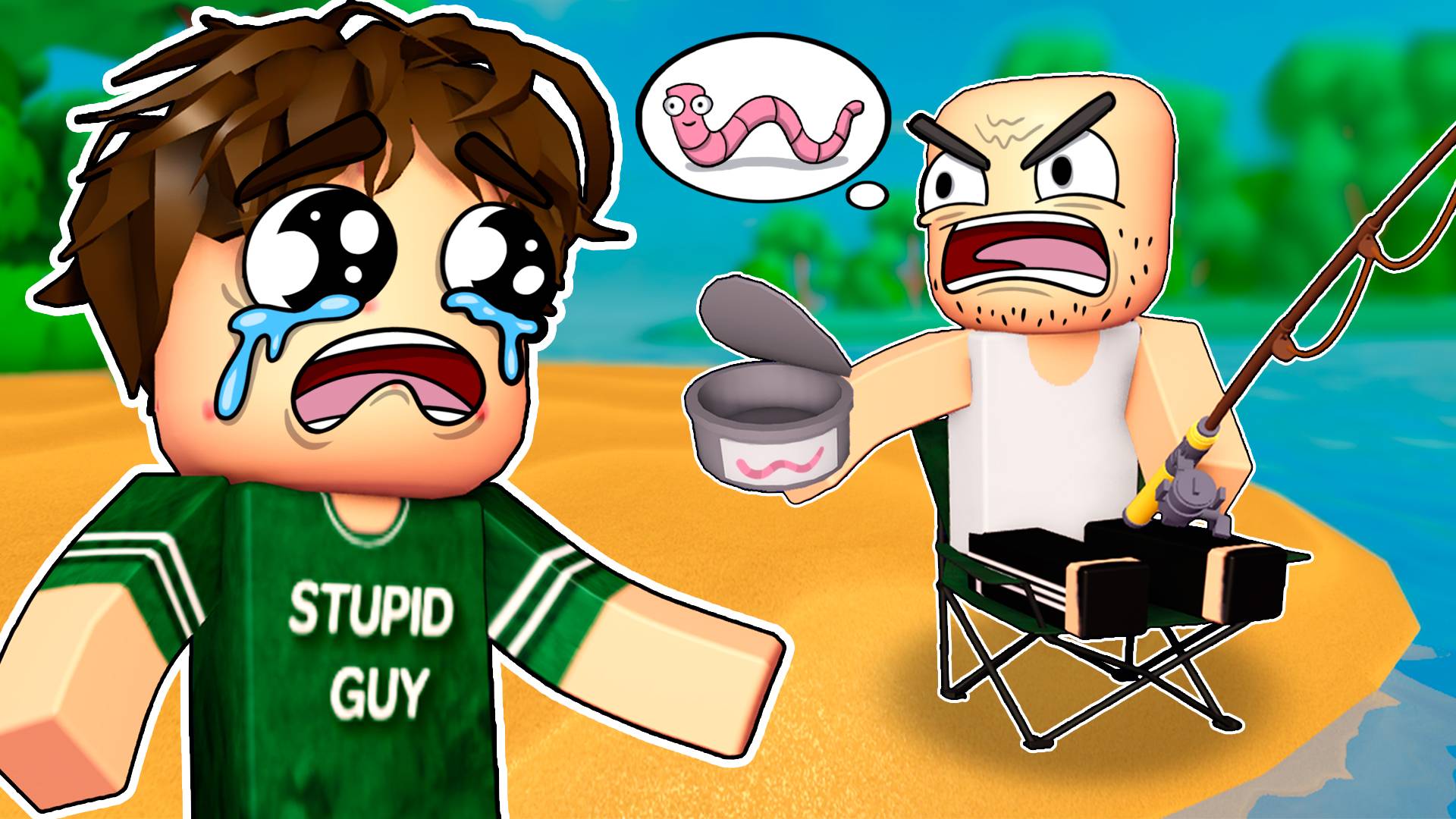 Глупый парень отправился на рыбалку (анимация в Роблокс)