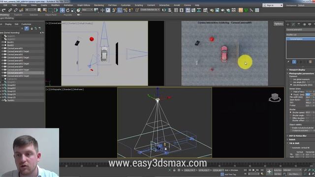 Серия уроков по настройке камер в 3ds Max. В этом видео рассказываю про типы камер (перспективная, ортогональная, сферическая, для съёмки на 360 градусов) и как их настраивать. Все уроки смотрите на сайте www.easy3dsmax.com