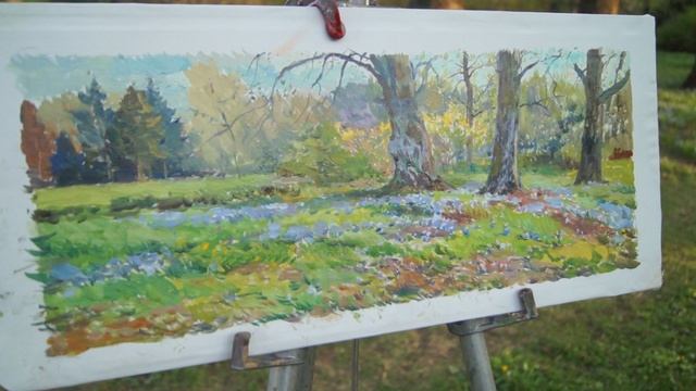 Этюд с синими цветочками Ботанический сад. Работаю на пленэре. Природа создает атмосферу, которая передается на холст. IntArtStudio. Художник Дмитрий Костылев. Dmitry Kostylew Artist