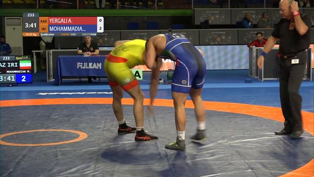 Qual. FS - 97 kg: A. YERGALI (KAZ) v. M. MOHAMMADIAN (IRI)