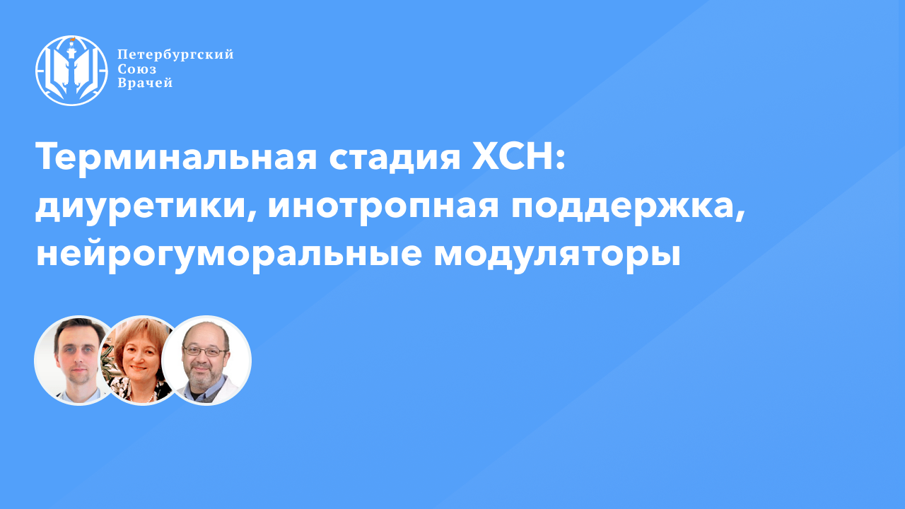 Видеозапись онлайн-семинара «Терапия больного с терминальной стадией ХСН: диуретики, инотропная поддержка, нейрогуморальные модуляторы» Сайт: www.spb.doctor Дата проведения: 15.03.2023, 20:00 Страница мероприятия: https://www.spb.doctor/info/23031520/ Программа: 1. Ведение больного с терминальной стадией ХСН: диуретики, инотропная поддержка, нейрогуморальные модуляторы. Федотов Петр Алексеевич 2. Клинический случай использования блокаторов РААС при лечении пациента с ХСНусФВ. Федотов Петр Алексеевич 3. Современный пациент: 40 лет жизни с сердечной недостаточностью. Дополнительные компоненты терапии, о которых полезно помнить. Жданова Ольга Николаевна 4. Базовая терапия ХСН у больных с низкой фракцией выброса. Эрлих Алексей Дмитриевич 3. Ответы на вопросы О семинаре: Несмотря на прогресс в лечении сердечной недостаточности и появление новых лекарственных препаратов, подходы к консервативному ведению пациентов с терминальной сердечной недостаточностью продолжают обсуждаться. Знание стратегий терапии пациентов с терминальной стадией хронической сердечной недостаточности на различных этапах оказания медицинской помощи позволяет эффективно применять лечебные стратегии, направленные на улучшение качества жизни и снижение бремени госпитализаций.