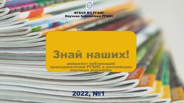 Публикация статей в уважаемых научных журналах — не просто средство создания хорошего имиджа ученого, это неотъемлемая составляющая его профессиональной деятельности. Научная библиотека РГАИС открывает рубрику «Знай наших!», в которой будут представлены публикации преподавателей РГАИС в российских научных журналах. С представленными в дайджесте журналами вы можете ознакомиться в читальном зале научной библиотеки РГАИС. Не пропустите новые выпуски!