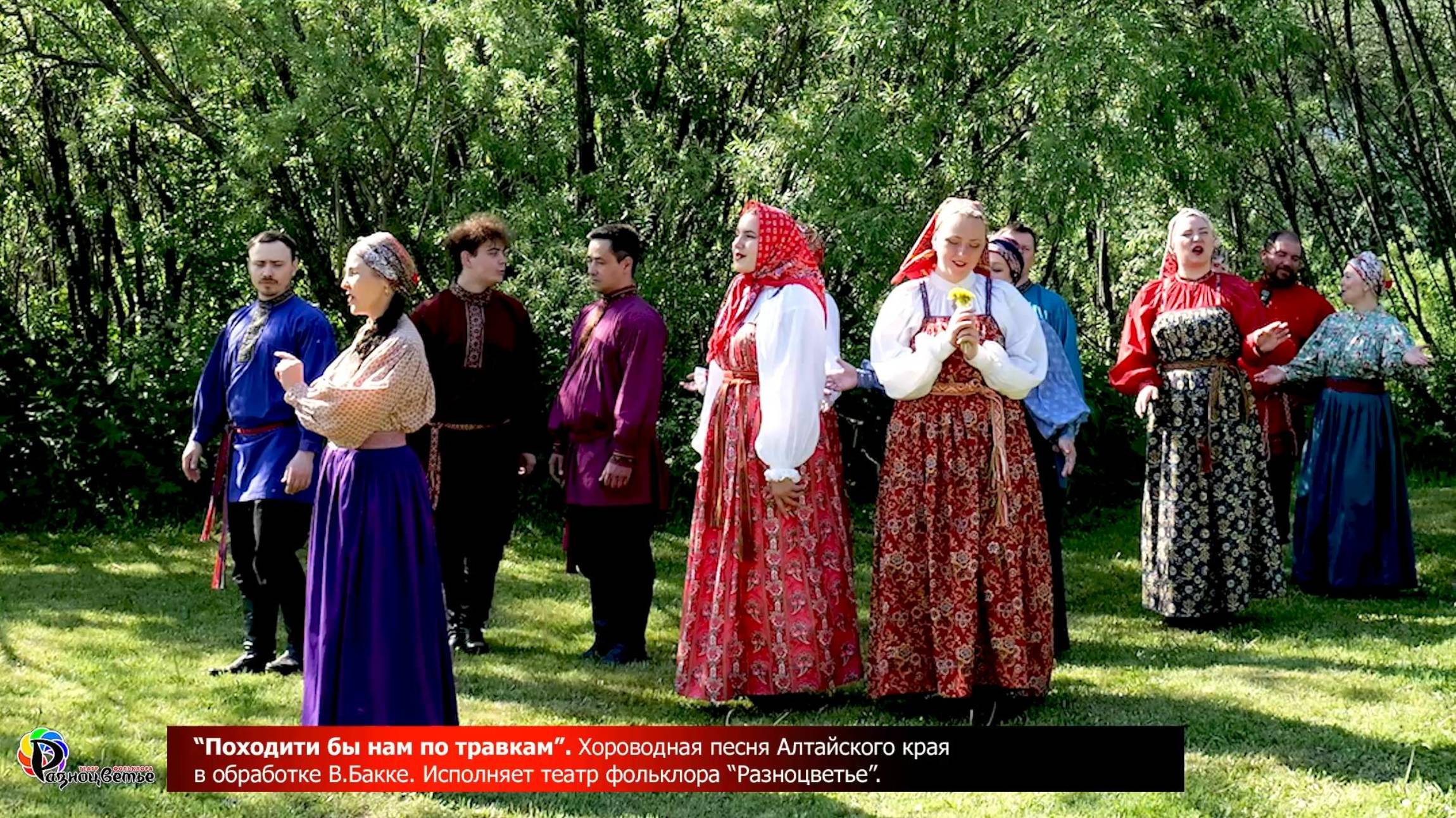 Хороводная песня Алтайского края в обработке В.Бакке. Исполняет муниципальный театр фольклора «Разноцветье». Снято в июне 2024 года в окрестностях с.Заварзино, г.Томск, Россия. Подробно о песне на https://multicolors.pro/single/2024_06_pohodit_by_nam_po_travke