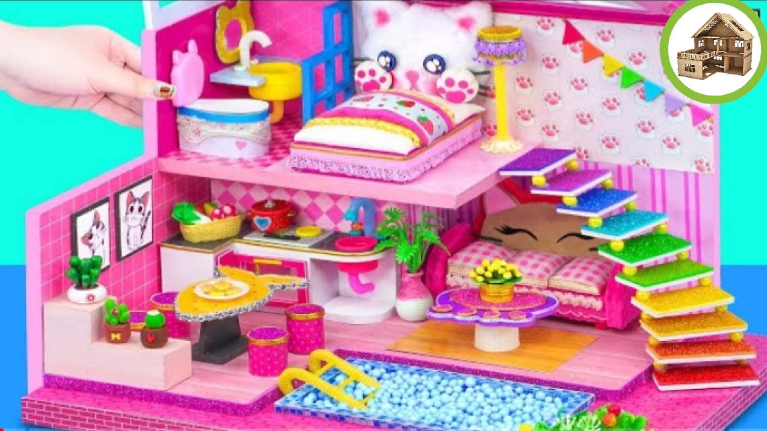 Симпатичный домик для котенка и летний бассейн для кукол своими руками миниатюрный домик #34