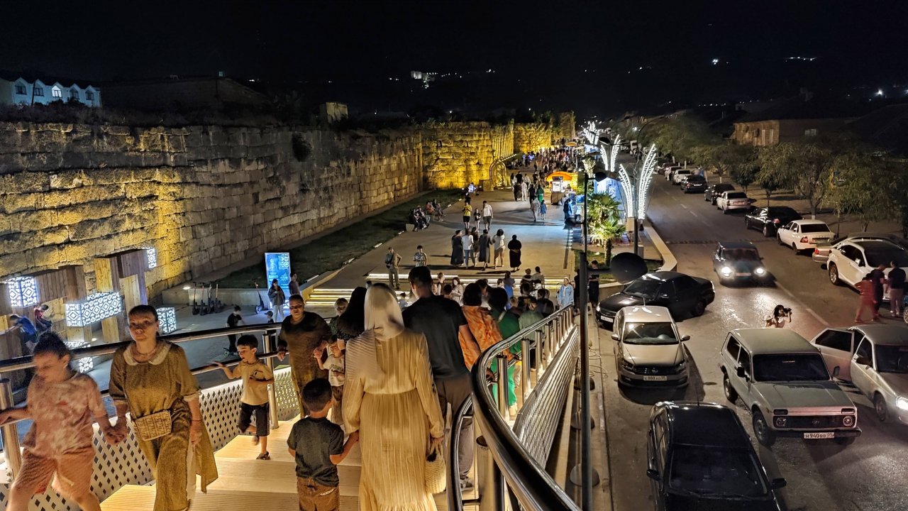 Пешеходную смотровую люди оценили сразу после открытия (мост через улицу Гагарина был открыт в июле 2022 г). От парка с самым большим мультимедийным фонтаном в России можно перейти по мосту к пешеходной улице Керима Мамедбекова и продолжить променад вдоль крепостной стены.