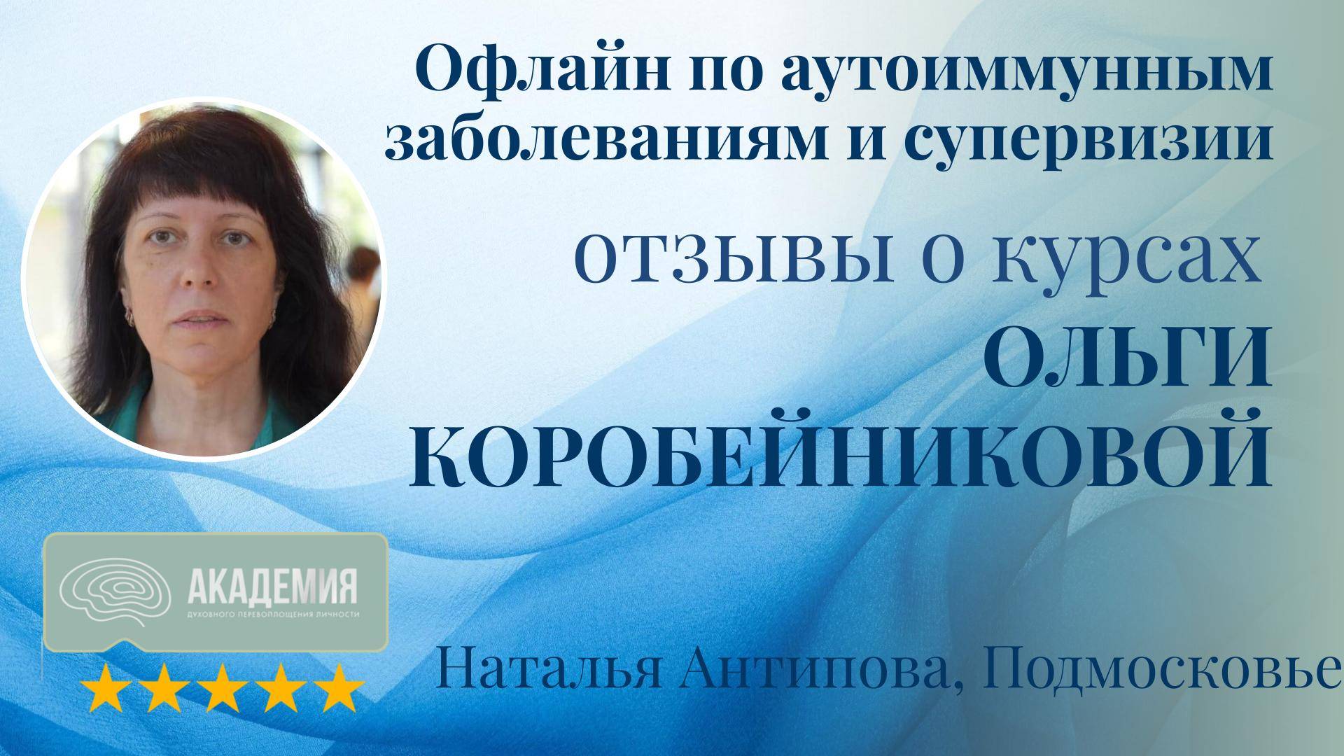Отзывы о курсе Ольги Коробейниковой: "Офлайн по аутоиммунным заболеваниям и супервизии" - Курс: Офлайн по аутоиммунным заболеваниям и супервизии Наталья отмечает, что участие в офлайне помогло ей глубже понять суть посланий Ольги, изложенных в её книге, и открыло новые смыслы. - Результат прохождения офлайна Наталья осознала глубину идей Ольги, открыла для себя новые смыслы и внутреннюю глубину. Отзывы Натальи показывают, что курсы Ольги Коробейниковой помогают участникам глубже осмыслить её учения и найти новые ценности для своего личностного роста. #самопознание #глубина #осознанность