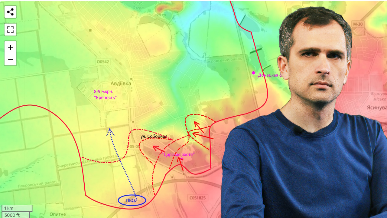 Оперативный кризис гарнизона ВСУ в Авдеевке набирает обороты. Вчера,наши войска сумели (надеюсь окончательно) закрепиться в важной южной части города, после чего противнику не оставалось ничего другого, как бросить важнейшие и очень сильные укрепрайоны юго-западнее Авдеевки. Также не прекращается давление наших войск и на других направлениях...