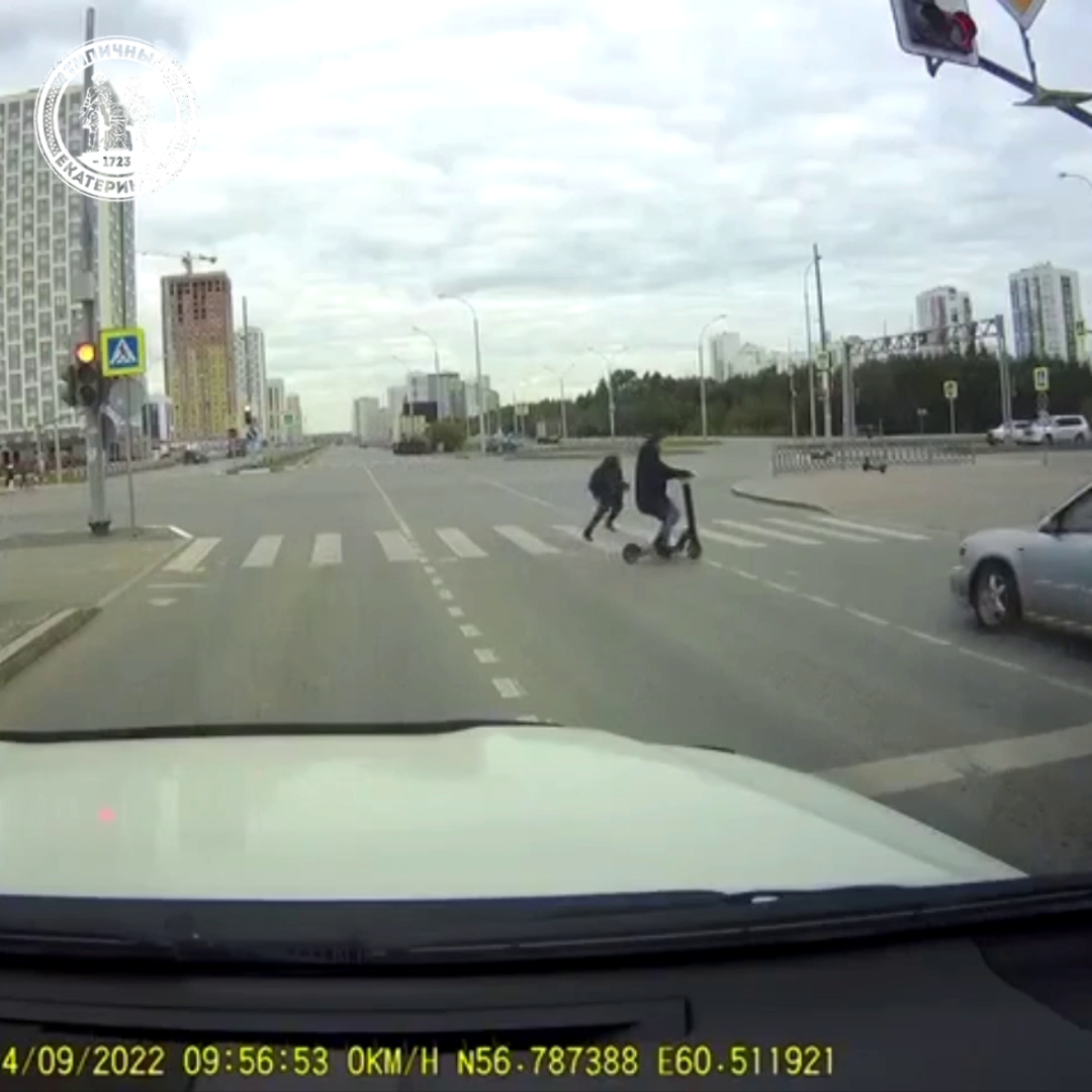 Мужчине с ребёнком очень сильно повезло. Заметьте, что за секунду до возможного столкновения сигнал светофора сменился на запрещающий. но водитель решил проскочить. Хотя и пешеходы не проявили должной бдительности. Хорошо, что всё закончилось без жертв!