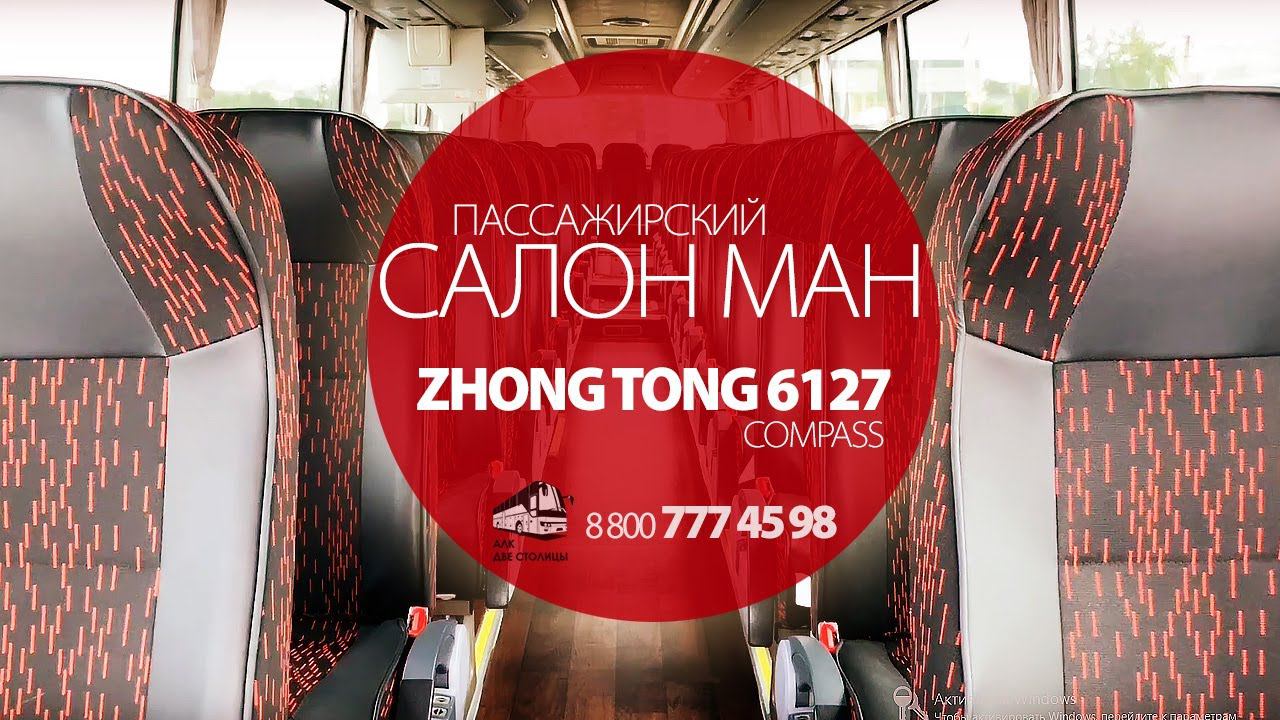 ZHONG TONG 6127 COMPASS единственный туристический автобус в России с наибольшим количеством опций, входящих в басовую стоимость. Сиденья MAN - базовая бесплатная версия. АЛК Пять Столиц - официальный представитель компании Zhong Tong Bus. Современные китайские автобусы Жонг Тонг уже в России! Туристический автобус Зонг Тонг 6127 Самый большой по вместимости туристический автобус в России. Самое большое расстояние между сиденьями. Самая богатая комплектация. На 1 500 000 рублей дополнительных опций в базовой версии автобуса. Лизинг с минимальным первым взносом, сроком на 5 лет, адекватные процентные ставки. Склад запасных частей. Каталог. Сервисная поддержка продукта. Все инструкции на русском. Взаимозаменяемые запасные части от Ютонг (Yutong), Кинг Лонг (King Long), Голден Дракон (Golden Dragon), Хайгер (Higer) • Независимую подвеску • Рулевое управление ZF • Багажный отсек 9,5 м³ • 70% чернойтонировки на окна • Две двери • Кондиционер • Механизм открывания дверей, установленный в салоне • Сиденья откидываются назад, наклон 35%, перемещаются в центр • Трехточечные ремни безопасности • Улучшенное место водителя • Торпедо нового образца • Рычаг КПП установленный в торпедо • IPad на месте водителя - управление аудио и видео • Шторы • Шторы на лобовое стекло • 8 печек отопления в салоне • Северное исполнение автобуса • Багажные полки • Системы индивидуального обдува и освещения, кнопки вызова водителя • Тканевую обивку боковин и полок • Два телевизора размерами 22 и 19 дюймов • ГЛОНАСС с устройством вызова экстренных служб • Подготовку под установку тахографа • 4 камеры в салоне, жесткий диск для хранения записей с камер • Камеру заднего вида • Проблесковые маячки • Настил пола - фанера и линолеум • Два лобовых стекла. Верхнее тонированное • ECAS паромник - система поднятия и опускания кузова • Два бака по 300 литров каждый общим объемом 600 литров. • Цвет кузова: на выбор (бесплатно) • Кулер • Холодильник • Спальное место водителя с кондиционером Базовые технические параметры автобуса Габаритные размеры (мм): 12 590×2 550×3 830 Расстояние между осями (мм):6 400 Внутренняя высота салона (мм): 2 020 Масса транспортного средства (кг)/снаряженная масса: 13 750…14 500/18 000…19 500 Колея передних/задних колёс (мм): 2 040/1 860 Угол разворота: 8/7,5 Максимальная скорость (км/ч): 120 Параметры двигателя: Модель двигателя: Cummins ISL 375 50, 375 л.с. Экологический класс: Евро 5 с использованием системы SCR AD Blue («мочевина») Объём(м³): 8 880 Максимальная мощность (кВт/rpm): 268/2 100, Тип топлива: Дизель Объём топливного бака (л): 300+300, заправка с двух сторон Сцепление: немецкая марка «Sachs», MFZ430, сухое, однодисковое Коробка передач: FAST 6DS 180T, механическая Подвеска: пневматическая JINBEN, 6 баллонов, 6 амортизаторов, подъём кузова KONRR Рулевая система: ZF 8098 гидравлический руль Мосты: DONGFENG Тормозная система: Двухконтурная пневматическая система «Wabco»; ABS «Wabco»; стояночный тормоз - пружинная система энергоаккумуляторов; осушитель воздуха «Wabco», ретардер - электромеханический тип, Terka. Все тормоза дисковые. Первая пассажирская дверь: пневматическая, одностворчатая с механизмом защиты от защемления, двойное остекление, с пультом дистанционного управления Вторая пассажирская дверь: пневматическая, одностворчатая с механизмом защиты от защемления, двойное остекление, с пультом дистанционного управления Сиденья: 33+1+1; 51+1+1; 53+1+1 ткань (материал на выбор, 