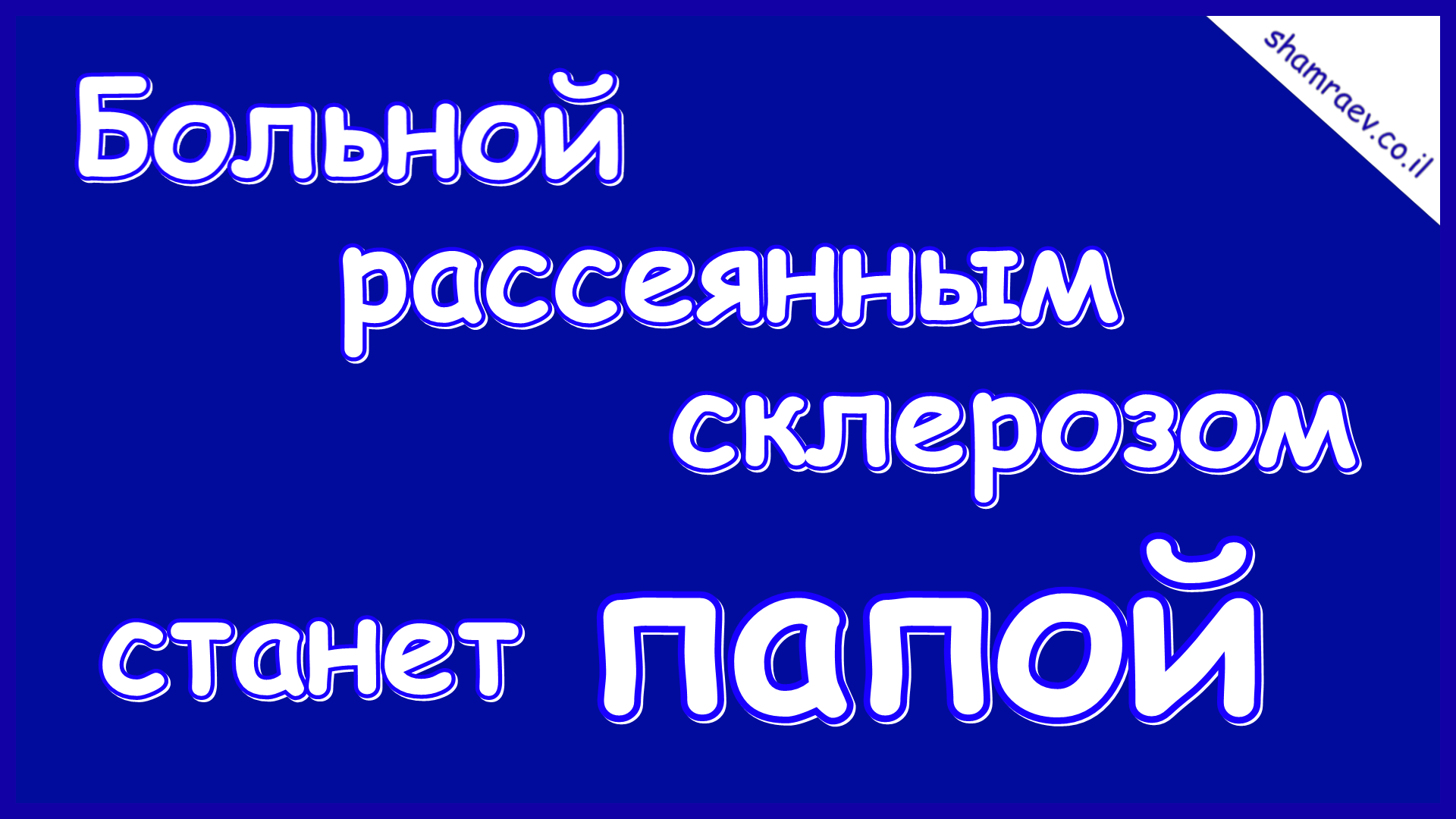Больной рассеянным склерозом станет папой (2024) https://youtu.be/tTNGoOTmKPQ Дополнительную информацию можно получить по скайпу: petrshamraev с 8:00 до 22:00 (время московское) Руководитель Психотерапевтического Исследовательского Центра автор открытия в области медицины психолог-психотерапевт Петр Шамраев Тел: +972-52-529-95-91 Тел: +972-52-634-67-74 WhatsApp: +972526346774 Skype: petrshamraev E-mail: petrshamraev@gmail.com Web: http://shamraev.co.il YouTube: https://www.youtube.com/channel/UCBsxIQzzHaDglyTg7J6Bl1A YouTube: https://www.youtube.com/@user-tb6ej6ol2b/videos RuTube: https://home.strannik-j.org/channel/10134425/videos/ Одноклассники: https://ok.ru/kakvylech Вконтакте: https://vk.com/id342874893 Dzen.ru: https://dzen.ru/id/60c06e755fe9c068e6ba4b1d Vimeo: https://vimeo.com/user183147794 Livejournal: https://petrshamraev.livejournal.com/ TikTok: https://www.tiktok.com/@petrshamraev?lang=ru-RU Подпишитесь на мой канал, и вы всегда будете в курсе последних открытий