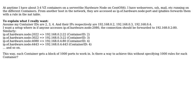 One-to-one mapping of port range from Hardware Node to VZ Containers with iptables