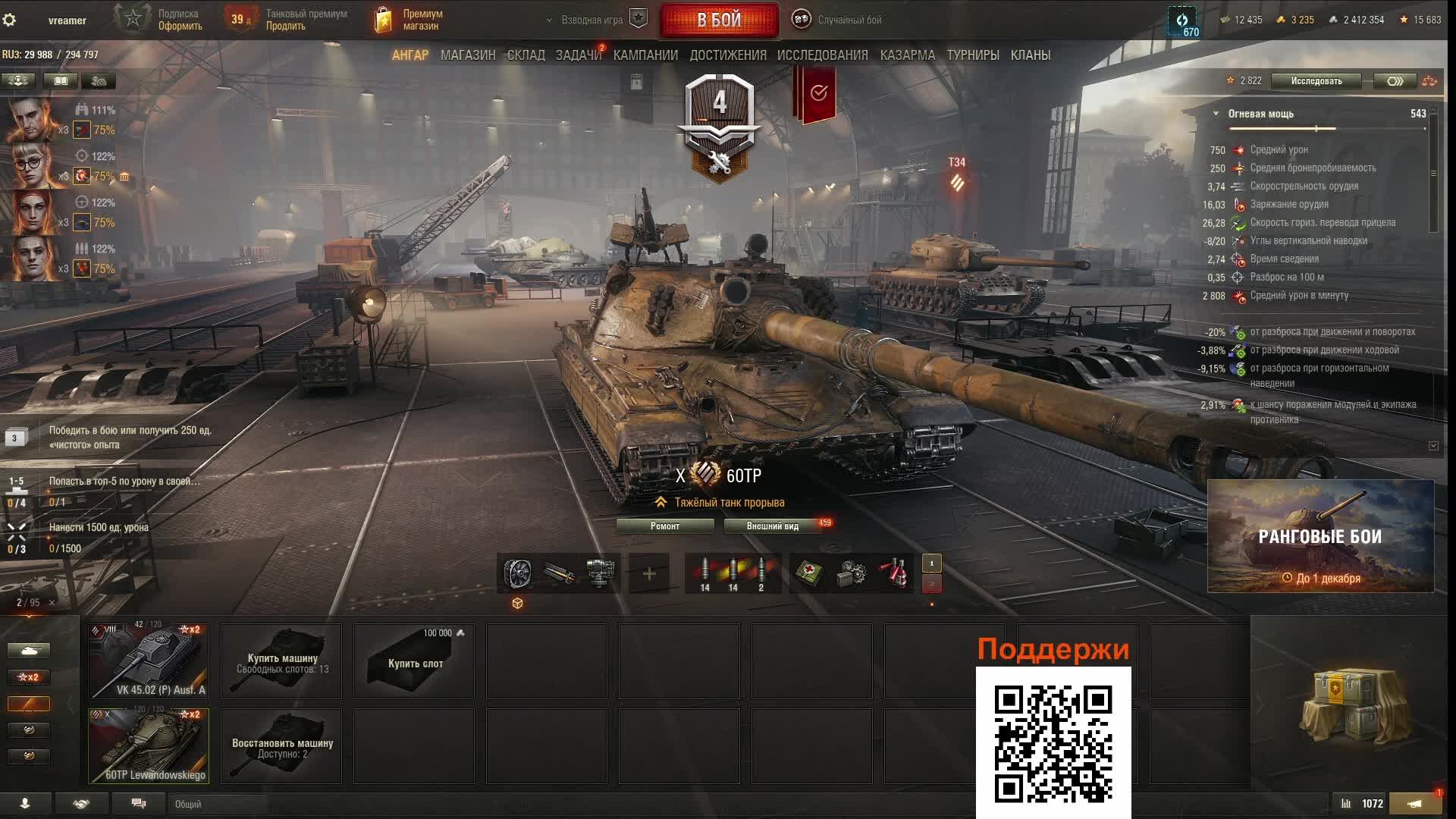 День 63 Без доната. Топ ТТ 60 ТР и новая ветка "Тапков" VК 45.02 А💩 Mir Tankov