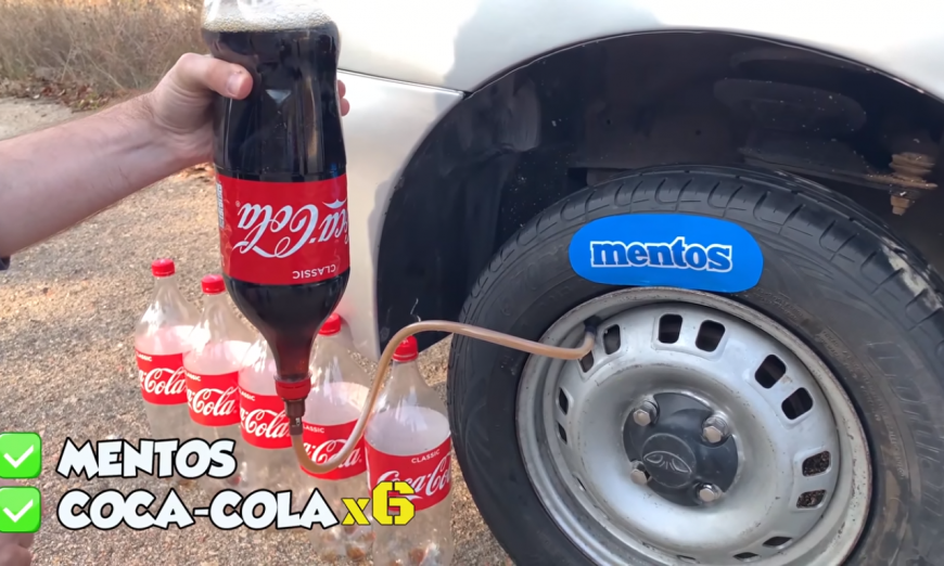 Что будет если залить КОКА КОЛУ в ПОКРЫШКУ и добавить MENTOS? Что произойдёт? #юмор #колла #ментос