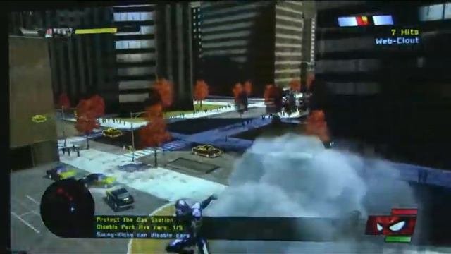 Visit http://www.poweredupgamers.com for video & written reviews, more gameplay videos, images & editorial articles. Using the black suit to web strike and destroy a gang's cars (from the "Spider-Man: Web of Shadows" video game).