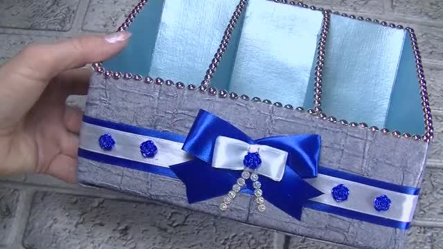 Органайзер из ненужных коробок и остатков обоев .