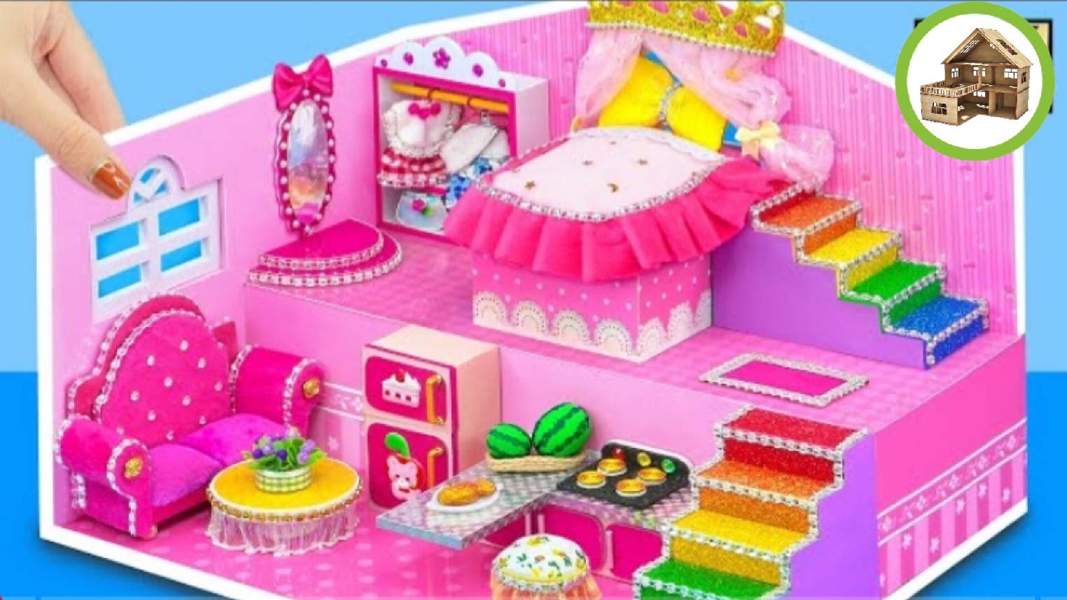 Красивый новый миниатюрный домик для моей куколки и питомца своими руками из картона #30