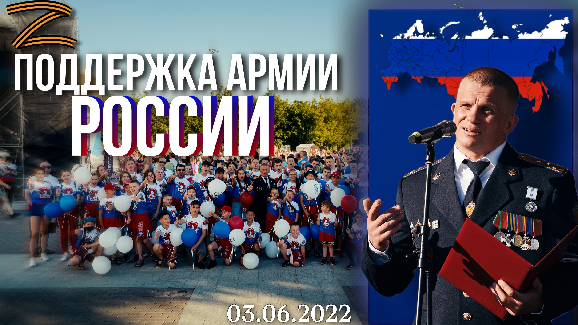 3 июля 2022 года на главной площади Красногорска состоялось масштабное патриотическое мероприятие, посвящённое Дню Ветерана Боевых Действий и поддержке Российской армии, участвующей в специальной военной операции. ? Спортивно-патриотический клуб "ЯРОПОЛК" принял непосредственное участие в прошедшем мероприятии, где спортсмены клуба и их родители выстроились в букву "Z"-символ специальной военной операции, а музыкальная группа нашего клуба исполнила 2 музыкальных композиции. Директор нашего клуба и ветеран боевых действий, выступил с приветственным словом, где рассказал о превосходстве Российских ценностей над Европейскими и своё видение происходящего сейчас на Донбассе. _________ СПК "Ярополк" в социальных сетях: 1. Сайт клуба "ЯРОПОЛК" http://yaropolk-kr.ru/ 2. Клуб в яндекс ДЗЕН https://zen.yandex.ru/id/622c6c101730a75b14e344f1 3. Канал клуба в РУТУБЕ https://home.strannik-j.org/channel/24364793/ 4. Основной ЮТУБ канал клуба https://www.youtube.com/channel/UC8_-UiULs-bVcRcwRq_IuMA 5. Резервный ЮТУБ канал (бои спортсменов клуба и т.д.- проф. и любительская видео съёмка) https://www.youtube.com/channel/UCHyOJ6PwuaSyKnQhoOCrH9A 6. Обучение по единоборствам (Ютуб канал клуба) https://www.youtube.com/channel/UC_uOxXHnxRU7vKDYCjlEosA 7. ЮТУБ канал музыкальной группы ЯРОПОЛК https://www.youtube.com/channel/UC7z6Z_Rblxy7Snt3Kwx9PUQ 8. В контакте: https://vk.com/yaropolk_krasnogorsk 9. В одноклассниках: https://ok.ru/group/52505508708529 10. В телеграмме t.me/YaropolkClub _________ #ярополк #клубЯрополк #группаЯрополк #патриотическийклуб #АрмияРоссии #заДонбасс #героиZ #Z #президентРоссии #ШадриковИлья