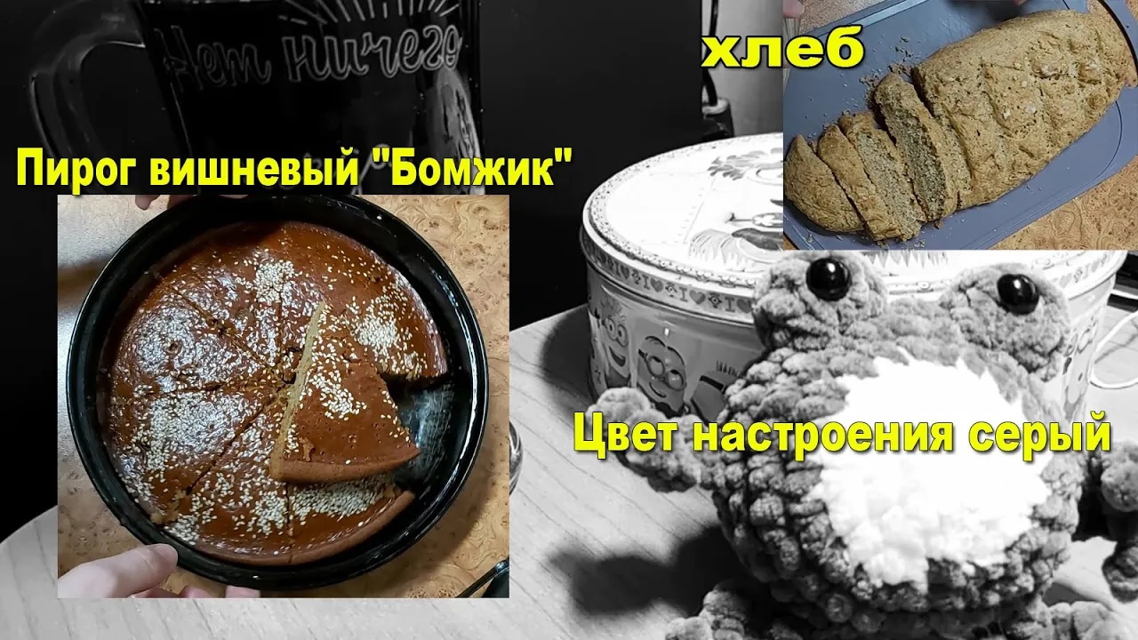 Пирог вишневый _Бомжик_???! Понемногу начала готовить! Цвет настроения серый_ Не дождётесь!!!!!))))