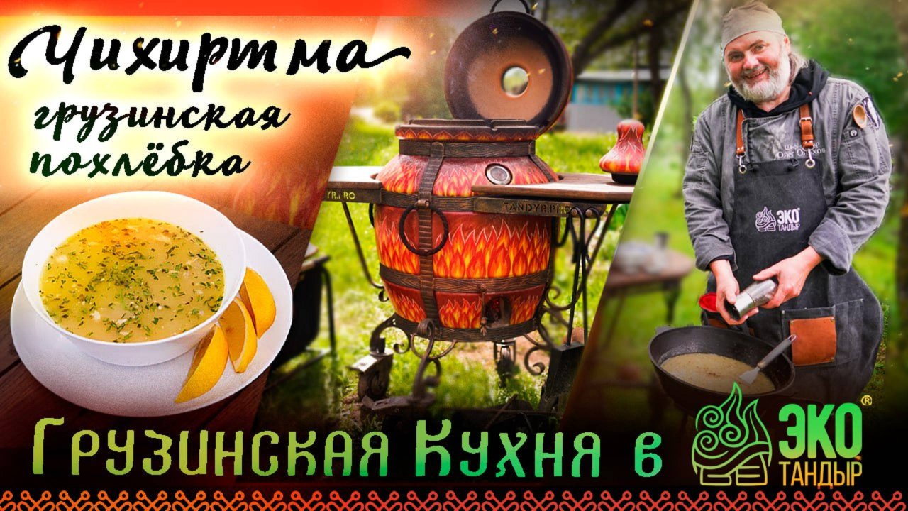 Сегодня приготовим в тандыре Огненный вместе с Олегом Ольховым национальный грузинский суп — Чихиртма (груз. ჩიხირთმა) Классический рецепт чихиртмы включает минимальное количество ингредиентов, каждый из которых тщательно подобраны для достижения идеального баланса вкуса и текстуры. Важнейший этап приготовления — аккуратное введение яично-кислой смеси в тёплый бульон Одной из особенностей чихиртмы является практически полное отсутствие овощей, кроме репчатого лука. Это выделяет её среди большинства супов мира и делает уникальным представителем грузинской кухни. 00:00 Что понадобится для приготовления 00:58 Начинаем приготовление 02:50 Заливаем воду к обжарке 04:28 Бульон готов 06:07 Вводим яйца в бульон 07:42 Возвращаем похлебку на огонь и доводим до готовности 08:30 Чихиртма готова! 09:03 Список ингредиентов Чихиртма (Рецепт для стадии разогрева тандыра, грузинская кухня) Курица тушка - 1/2 шт., репчатый лук - 3 шт., яйца - 4 шт, уксус винный - 2 ст.л, мука пшеничная - 2 ст. л., масло сливочное - 50 г, кинза, свежая мята, настой имеретинского шафрана, перец чёрный молотый, соль Для подачи: лимон и чеснок Подобрать тандыр можно здесь: https://tandyr.pro/about/tandyrs#tandyrChoice У Вас уже есть тандыр и нужны правильные аксессуары? https://tandyr.pro/accessories ЭкоТандыр на других площадках: Группа ВКонтакте: https://vk.com/ecotandyr ВК Видео: https://vkvideo.ru/@ecotandyr Телеграм-канал: https://t.me/tandyrpro Дзен: https://dzen.ru/eco_tandyr YouTube: https://www.youtube.com/@EcoTandyr Rutube: https://home.strannik-j.org/channel/24107208/ Электронная почта для связи: info@tandyr.pro