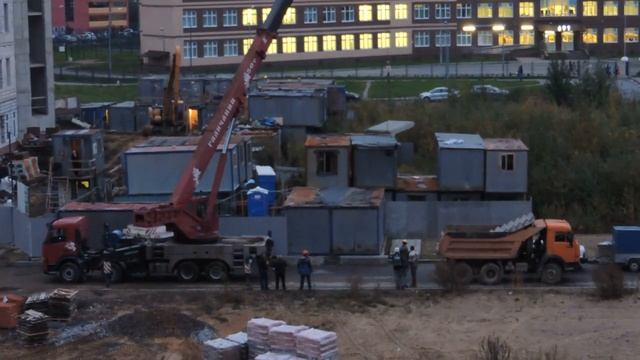 Автокран вечером в работе