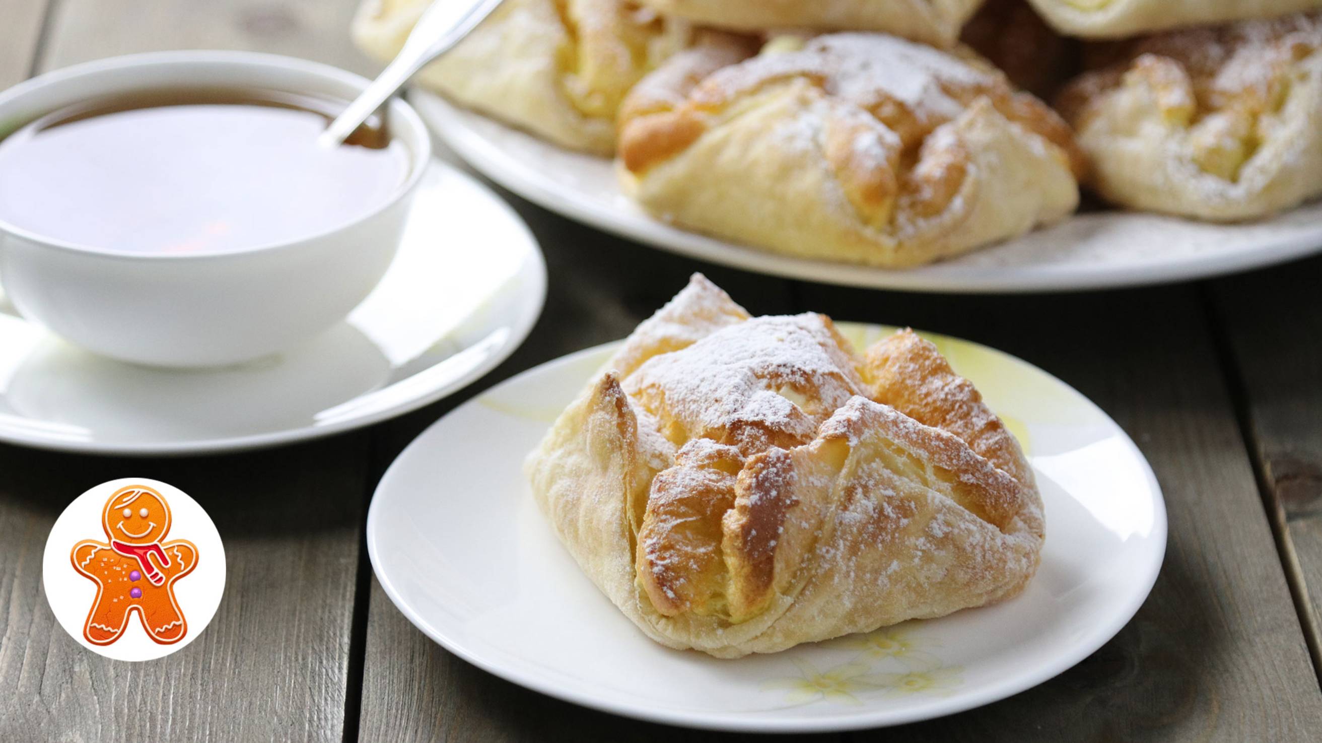 Упаковка 950 г слоеного бездрожжевого теста Для заварного теста: 140 г муки 125 мл воды 125 мл молока 4 крупных яйца 115 г сливочного масла 1 ст. ложка сахара 1/4 ч. ложки соли Для крема: 500 мл молока 2 средних яйца 120 г сахара 8 г ванильного сахара 50 г муки или крахмала 50 г сливочного масла 200 мл сливок 33-35% или 200 г сливочного масла 1 ст. ложка сахарной пудры сахарная пудра для посыпки Текстовый рецепт здесь - https://dzen.ru/a/aSGQo92yOTyVk4Oy Заварное тесто для эклеров и профитролей - https://home.strannik-j.org/video/2fb9485ea3e1451fcb4c7aec56571edc/