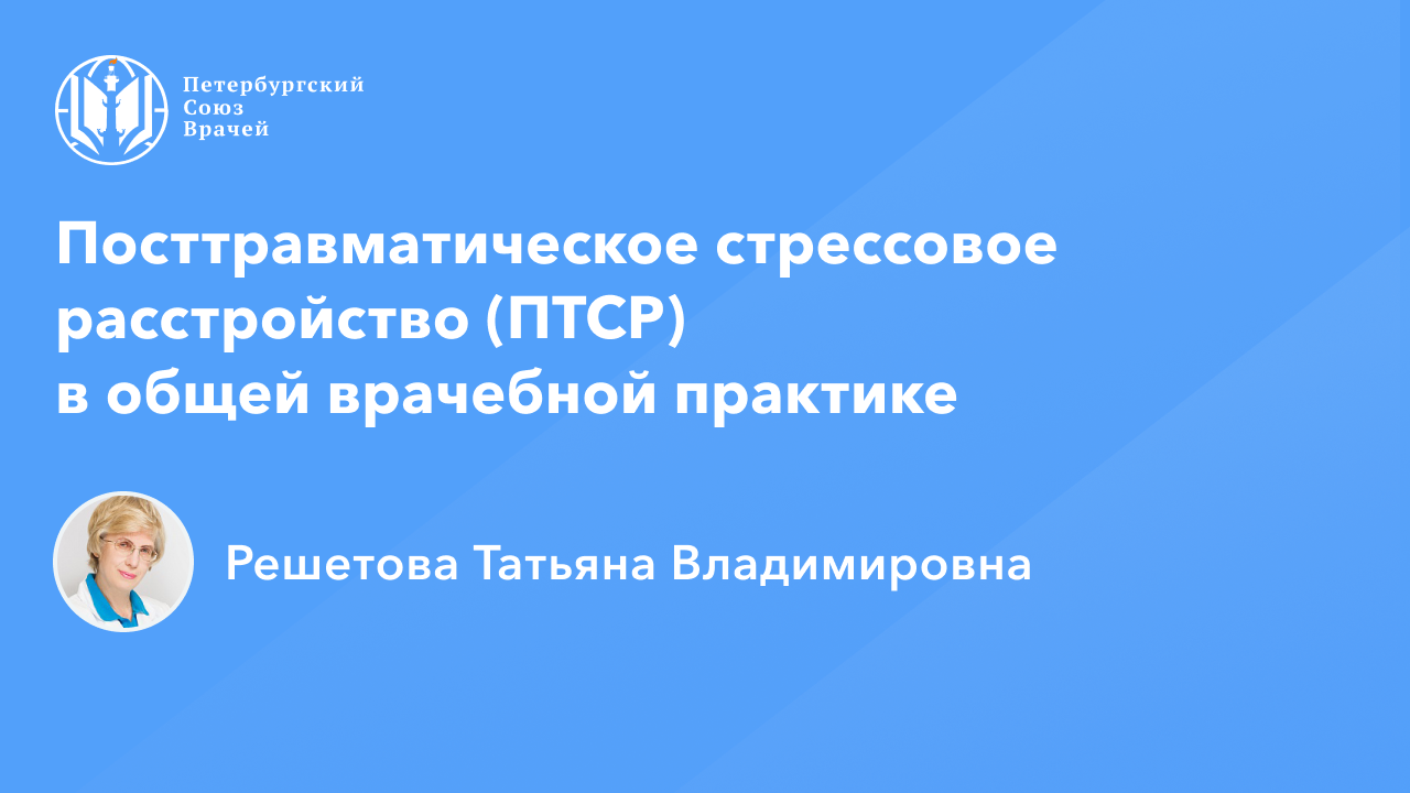 Посттравматическое стрессовое расстройство (ПТСР) в общей врачебной практике Сайт: www.spb.doctor Дата проведения: 07.09.2023, 20:00 Страница мероприятия: https://spb.doctor/i/23090720/ Программа: 1. Посттравматическое стрессовое расстройство (ПТСР) в общей врачебной практике. Решетова Татьяна Владимировна 2. Современная фармакотерапия при ПТСР. Решетова Татьяна Владимировна 4. Ответы на вопросы О семинаре: В онлайн-семинаре, будут подробно рассмотрены особенности формирования и клинические проявления Посттравматического стрессового расстройства (ПТСР). Будут разъяснены понятия "травмы свидетеля" (членов семьи), комплексного ПТСР, викарной травмы самого врача и др.; разобраны вопросы ранней и доступной врачам общей медицинской практики, экспресс-диагностики ПТСР и его психопатологических проявлений: тревожных, депрессивных расстройств, зависимости от алкоголя - с помощью кратких психологических тестов. Будут освещены особенности феноменов, с которыми может встретиться интернист в общемедицинской (не психиатрической) практике, разнообразные проявления ПТСР: в социальной сфере (конфликтность, недисциплинированность, социальная неустроенность, замкнутость), в когнитивной, эмоциональной сферах, а также соматические проявления ПТСР (ВСД, психосоматические расстройства, бессонница, усиление болевого синдрома, снижение репаративных процессов). Будут представлены особенности патоморфоза ПТСР во времени. Будут проанализированы: алгоритм специализированной помощи подобным больным с учетом степени дезадаптации пациента с ПТСР, роль врача интерниста в логистике получения данной помощи. С учетом уровня компетентности врача, будут представлены различные возможности психофармакотерапии и психологической поддержки, доступные врачу общей практики.
