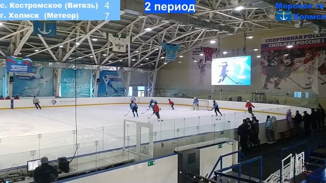 Видео снято 9 апреля 2023 года в ледовом комплексе Холмск-Арена города Холмск. В синей форме команда Метеор город Холмск, а в оранжевой команда Витязь из посёлка Костромское. Встреча завершилась со счётом 15-7 победой команды Метеор из города Холмск.