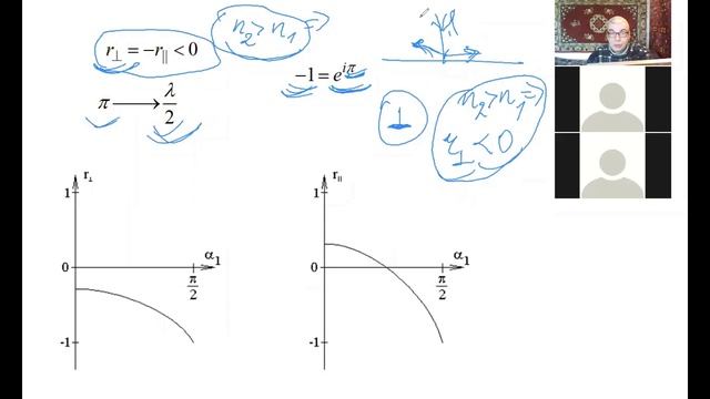 8 лекция, часть 5, Оптика, СПбГУ, 2021, Крылов И. Р., потеря полуволны при отражении от оптически более плотной среды.