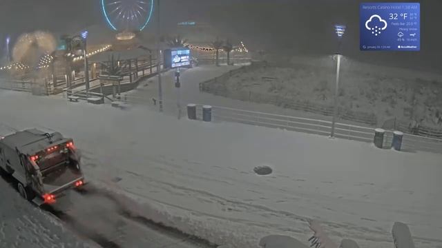 Ночь 1:30 с 28 на 29 января 2022г Камера установлена в отеле «Resorts Casino Hotel» в Антлантик-Сити. Камера направлена в сторону прогулочного дощатого настила, набережной, пляжа и Атлантического океана. В правом верхнем углу онлайн трансляции указаны текущие погодные условия. На переднем плане трансляции с онлайн веб-камеры расположен прогулочный дощатый настил (бордвок), а на дальнем плане можно увидеть колесо обозрения.