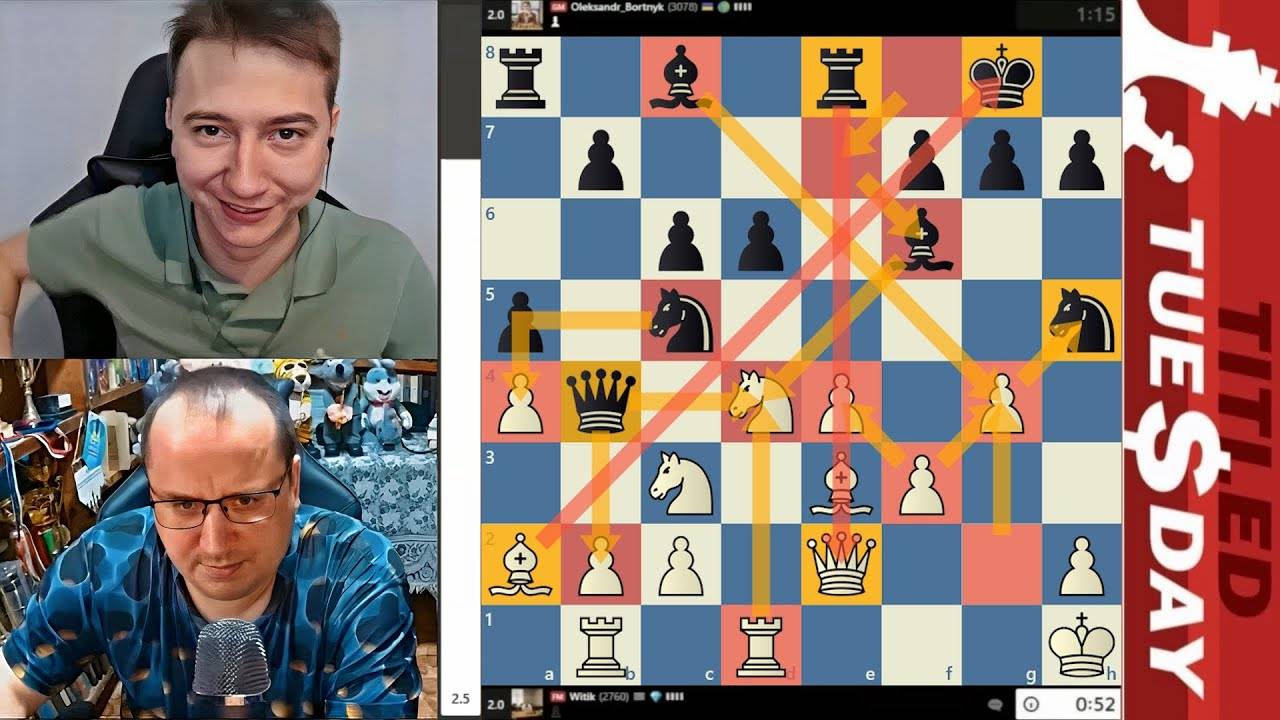 ПЕШКУ хочет СОЖРАТЬ! Вячеслав Витик - Александр Бортник 04.04.2023 МФ Вячеслав Витик (канал) - https://www.youtube.com/channel/UC24PskBhMRzntvaS5qTTp2A МГ Александр Бортник (канал) - https://www.twitch.tv/bortnyk_chess