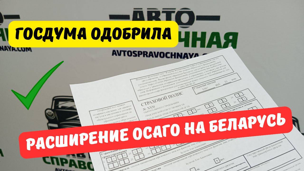 26 ноября 2024 года во втором и третьем (окончательном) чтении Госдумы одобрено расширение российских полисов ОСАГО на Беларусь. Документ тут: https://avtospravochnaya.com/20425 👉Калькулятор ОСАГО: https://avtospravochnaya.com/osago 👉Калькулятор КАСКО: https://avtospravochnaya.com/kasko 👉ОСГОП для такси: https://avtospravochnaya.com/osgop 👉Проверка истории авто: https://avtospravochnaya.com/proverka-avto МОИ ПЛОЩАДКИ 📌Telegram: https://t.me/avto_spravochnaya 📌Сайт: https://avtospravochnaya.com/ 📌YouTube: https://www.youtube.com/c/Avtospravochnaya 📌Дзен: https://zen.yandex.ru/avtospravochnaya 📌ВК: https://vk.com/avtospavochnayacom 📌RuTube: https://home.strannik-j.org/u/avtospravochnaya/ 📌ОК: https://ok.ru/group/70000030815992 🤝Поддержать канал: https://yoomoney.ru/to/410014086728201 ✉По вопросам сотрудничества и рекламы: avtospravochnaya@yandex.ru #автосправочная #avtospravochnaya #пдд #осаго #штрафы #техосмотр #гибдд #измененияпдд #изменениядляводителей
