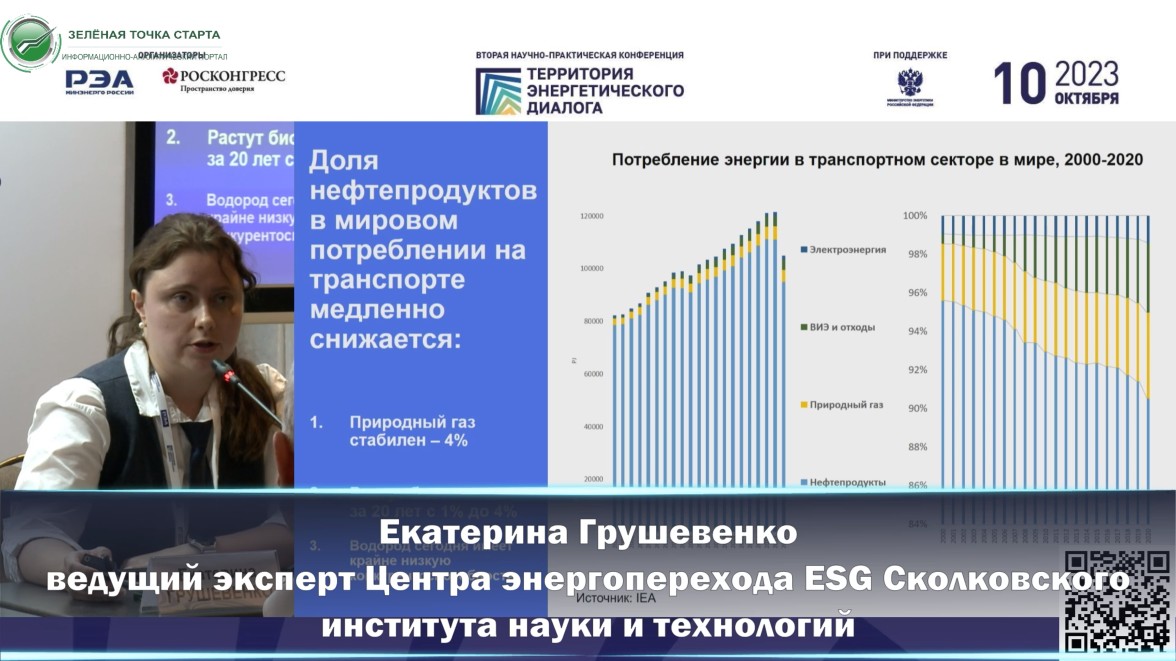 Екатерина Грушевенко, ведущий эксперт Центра энергоперехода ESG Сколковского института науки и технологий, 10-ого октября 2023 г. на научно-практической конференции «Территория энергетического диалога», в своём докладе представила показатели развития рынка электромобилей в России и в мире. Коротко - в мире наблюдается 4 тенденции по топливному балансу, которые явственно показывают в каком направлении идёт развитие транспорта: 1. Снижение потребления бензина и дизеля 2. Сохранение потребления газомоторного топлива в мире, с некоторым ростом потребления в России 3. Рост потребления в качестве "топлива" электроэнергии 4. Водород имеет некий незначительный рост, но в целом его объём в топливном балансе пока весьма незначителен Сколтех предлагает не догонять, "убежавших далеко вперёд", а нацелиться на разработки технологий, которые станут актуальны в ближайшей и среднесрочной перспективе. Поддержите канал подпиской на нас в Телеграм - https://t.me/GreenStartPoint Финансовая поддержка перечислением любой суммы на наш счёт на Юмани - https://yoomoney.ru/to/41001674743515